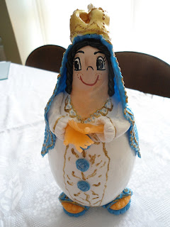 Ao encontrar esta estatueta de gesso em sua forma bruta ( branca,sem pintura, imaculada), achei-a super engraçada e lembrei de algumas personagens - do mundo real e imaginário - que conheci: a de quem reconhece e sabe seu lugar no mundo, a de quem não está nem aí para modismos e quer mesmo é ser feliz... E foi assim que compus esta peça, dando-lhe o colorido e a desenvoltura peculiares. Que tal?